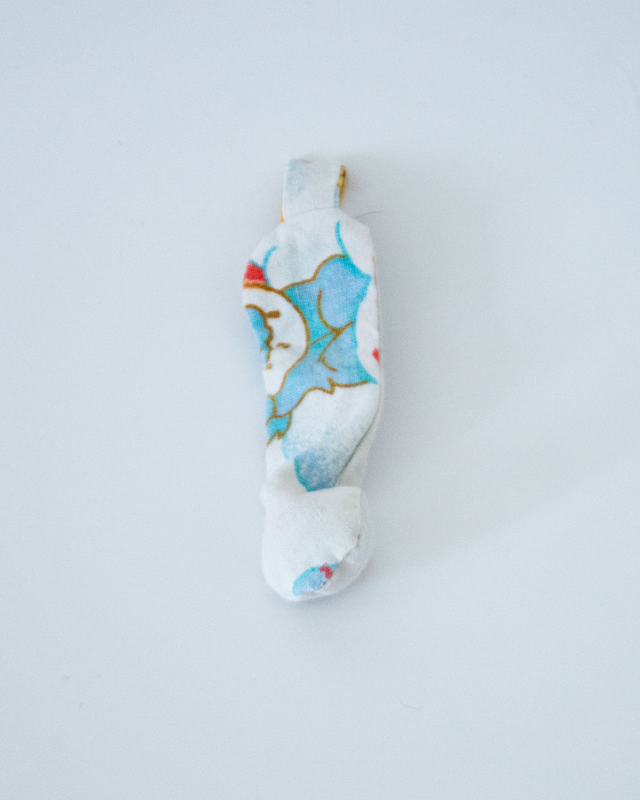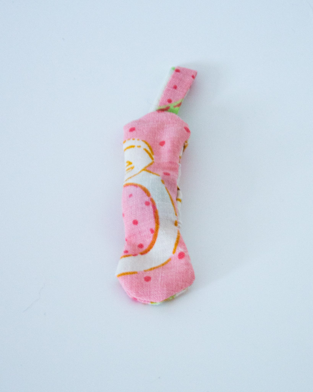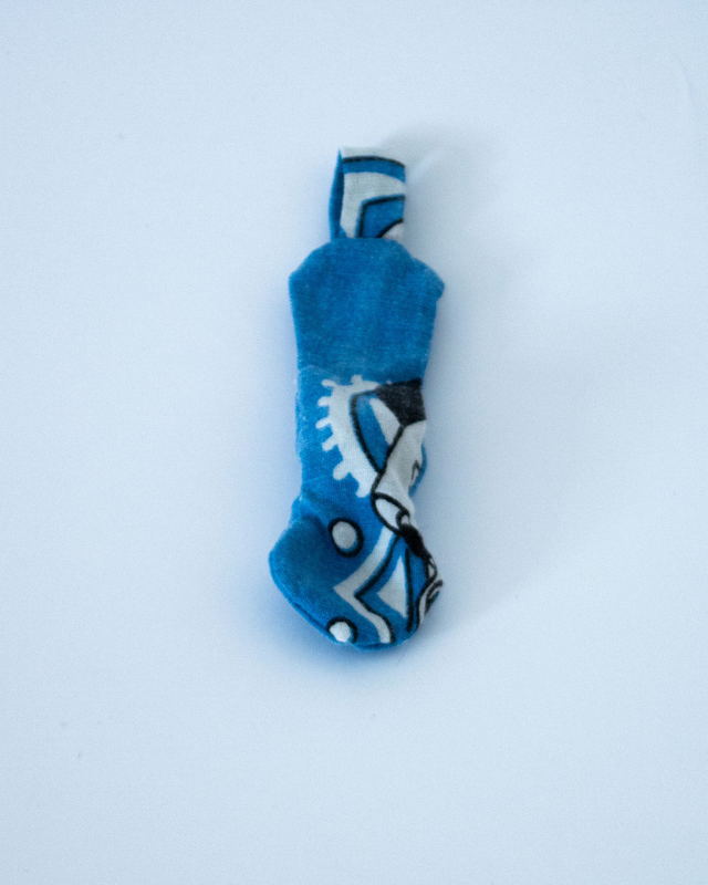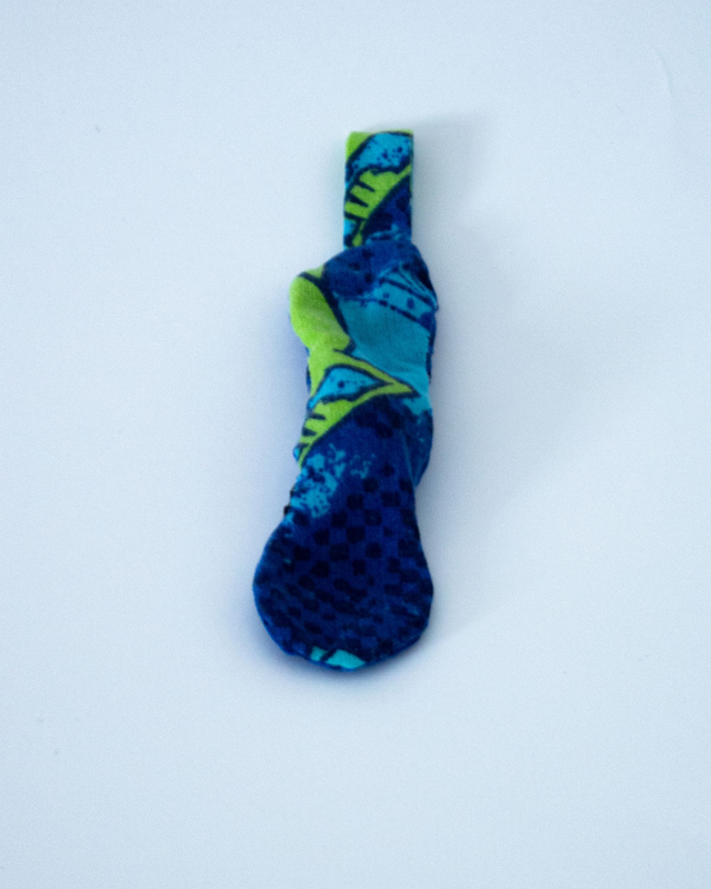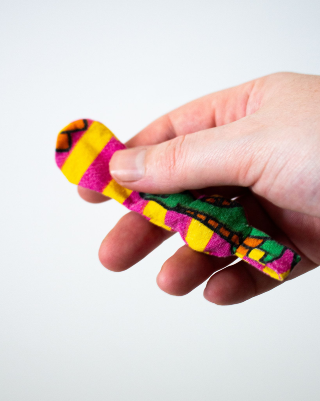 Confectionné à partir de chutes de tissus de seconde main, chaque pièce est unique et colorée.